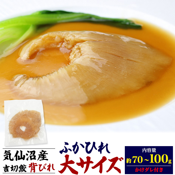 ふかひれ 背びれ 大サイズ(約70g〜100g前後)かけダレ付き 国産 宮城県産 気仙沼産 吉切鮫 高級食材 フカヒレ 調理前 味付け前 中華食材 中華料理 業務用 素材 材料 高級食材 本格中華 日本産 鱶鰭 1人前 2人前 ヨシキリザメ 吉切さめ 背ビレ 姿煮 ステーキ スープ