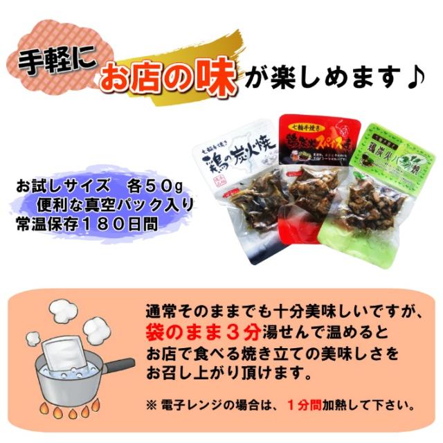 炭火焼き 選べる 3種類 お取り寄せ お試しセット 50g×1袋 国内産 鶏肉 焼き鳥 本場九州 ご当地 宮崎 特産 おつまみ ポイント消化 798円