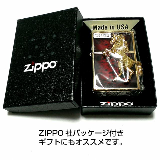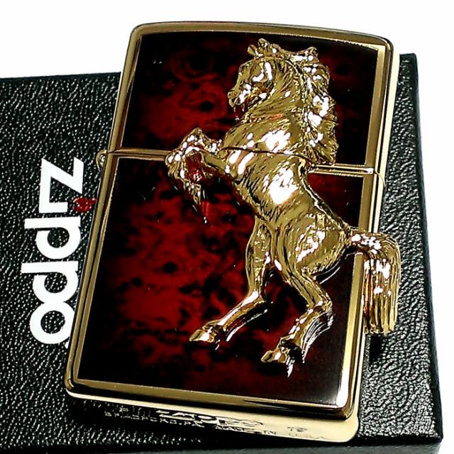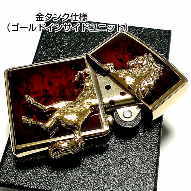 ZIPPO ライター ウイニングウィニー ジッポ ゴールドプレート ディープレッド かっこいい 馬 赤金 おしゃれ 金タンク ホース