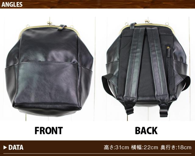 可愛いがま口デザインが魅力のフェイクレザーリュックサック!