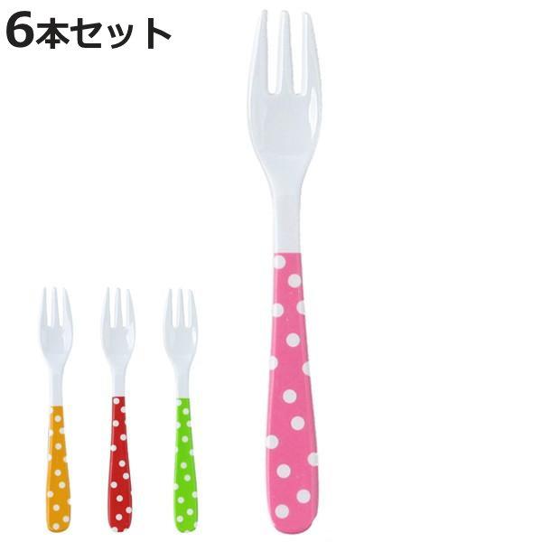 フォーク 同色6本セット メラミンフォーク カラードット イエロー ( メラミン カトラリー ドット 水玉 メラミン製カトラリー 食器 器 子供用 キッズ ベビー かわいい 割れにくい 6本入り 6本 メラミン製 丈夫 軽い )