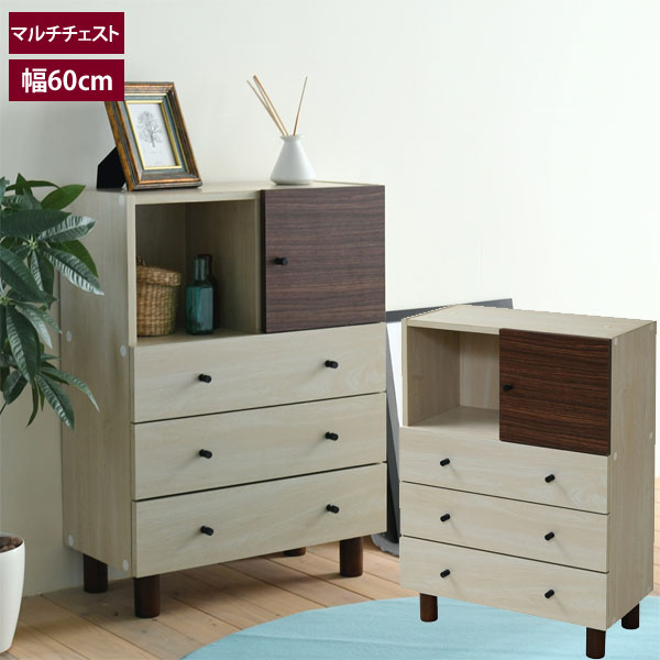 木製マルチチェスト 幅60cm サイドボード ナチュラル 収納家具 ツートンボックス FMB-0004-JK