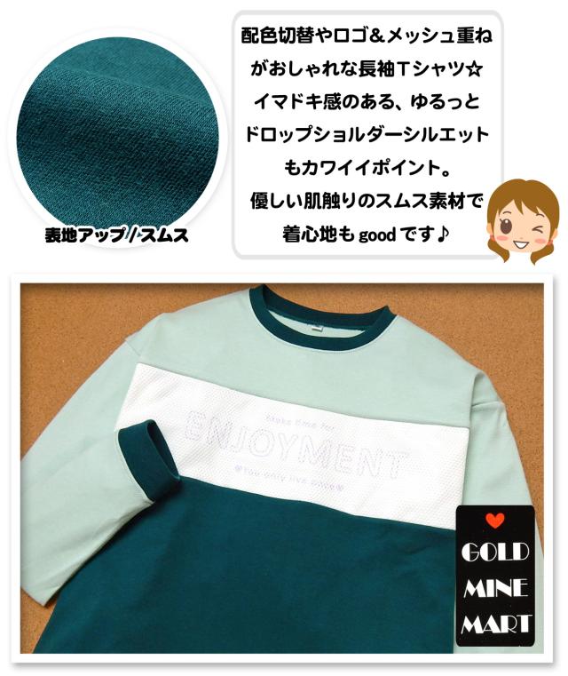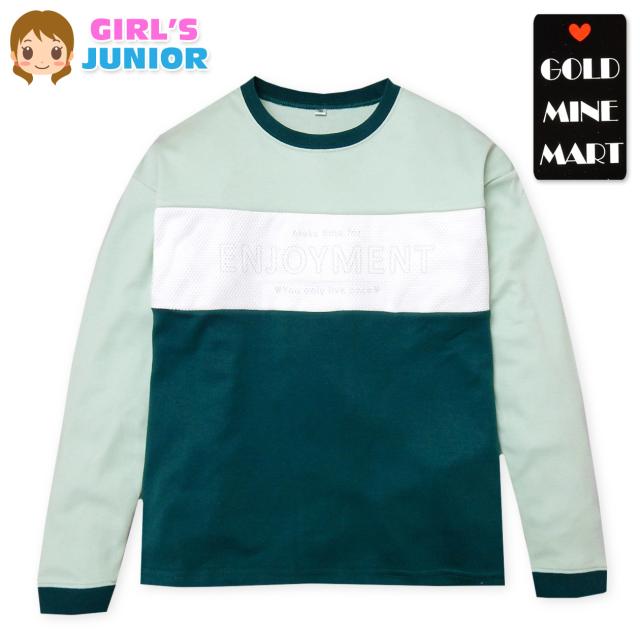 【送料無料】女児 ジュニア スムス 長袖 Tシャツ ドロップショルダー 子供服 女の子 140cm 150cm 160cm a-1771a-gn【メール便対応】