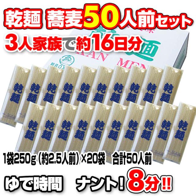 | 内容量 | ■乾麺そば 1袋(250g)×20袋(50人前) ※このセットにつゆは付いておりません。 |