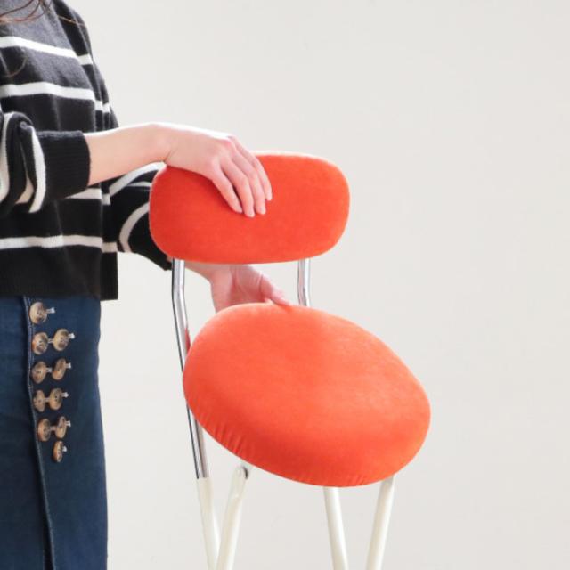 《 LH16791 折りタタミ 木製 簡易チェア キッチン リビング ワンアクション オレンジ グリーン ホワイト ブラック 緑 白 黒 高さ 75 奥行き 45 幅 30 ファブリック ベロア調 おしゃれ 》