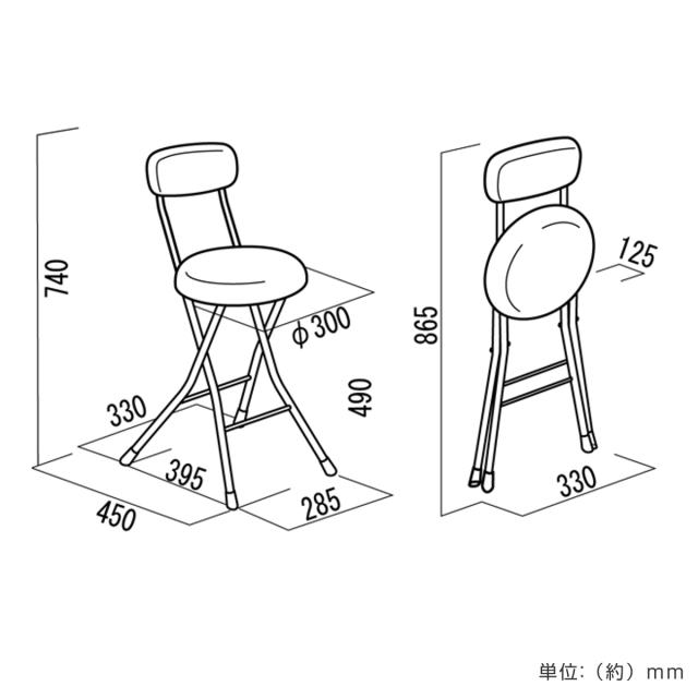 | サイズ | 約 幅33×奥行45×高さ74(cm) 座面高:約 49(cm) 折りたたみ時:約 幅33×奥行12.5×高さ86.5(cm) |