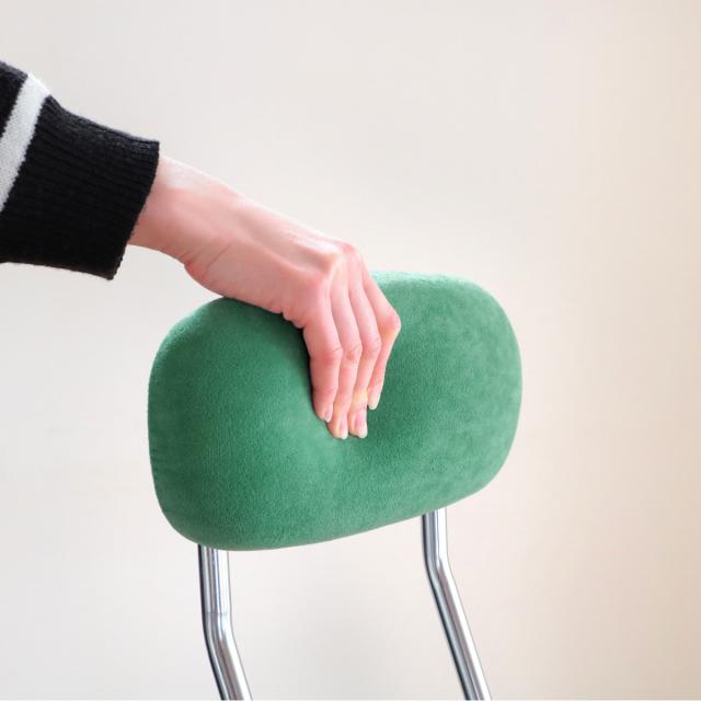 背もたれと座面の生地には、サラサラとし手触りの良いポリエステル生地を使用しています。また、どちらもクッション性があり座り心地抜群です。