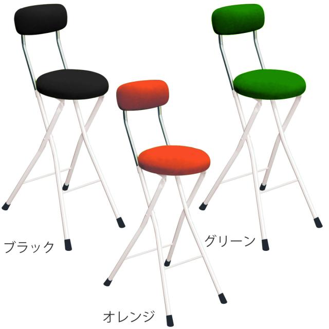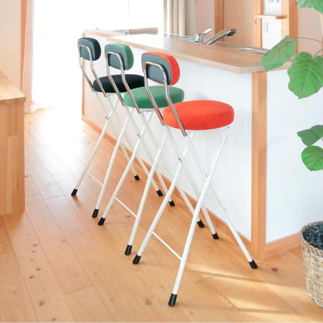 折りたたみ椅子 同色4脚セット 座面高66cm ラウンドクッション 背もたれ付 ラウンドクッションチェア ( ベロア調 ハイタイプ ハイチェア カウンターチェア キッチン 簡易椅子 パイプ椅子 日本製 )