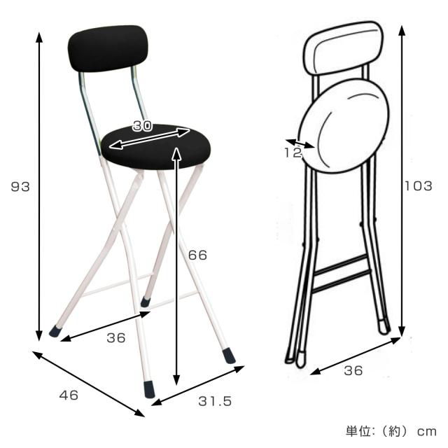 | サイズ | 約 幅36×奥行46×高さ93(cm) 座面高:約 66(cm) 折りたたみ時:約 幅36×奥行12×高さ103(cm) |