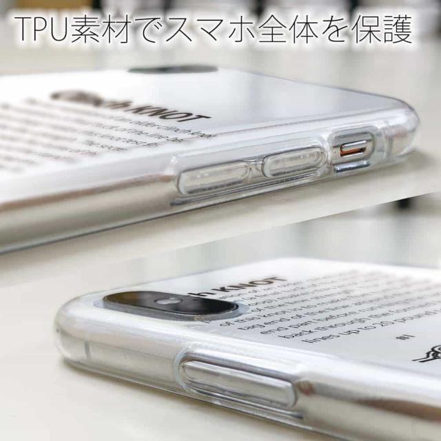 | ケースの素材について | 側面はゴムのように柔らかいTPU素材で、スマホ本体を守ります。万が一の落下でもケースが割れることがなく、耐久性の高いケースとなります。クリア(透明)のTPUケースにプリントしていますので、スマホ本体のカラーを活かしながらデザインケースが楽しめます。 |