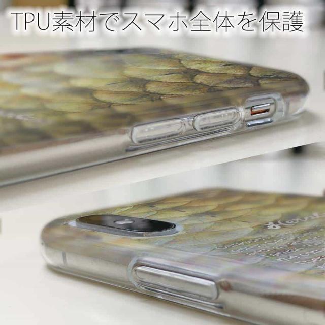 | ケースの素材について | 側面はゴムのように柔らかいTPU素材で、スマホ本体を守ります。万が一の落下でもケースが割れることがなく、耐久性の高いケースとなります。クリア(透明)のTPUケースにプリントしていますので、スマホ本体のカラーを活かしながらデザインケースが楽しめます。 |
