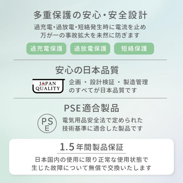 ■保護機能:過充電(電圧 / 電流)保護、過放電(電圧 / 電流)保護、短絡(ショート)保護、温度上昇抑制