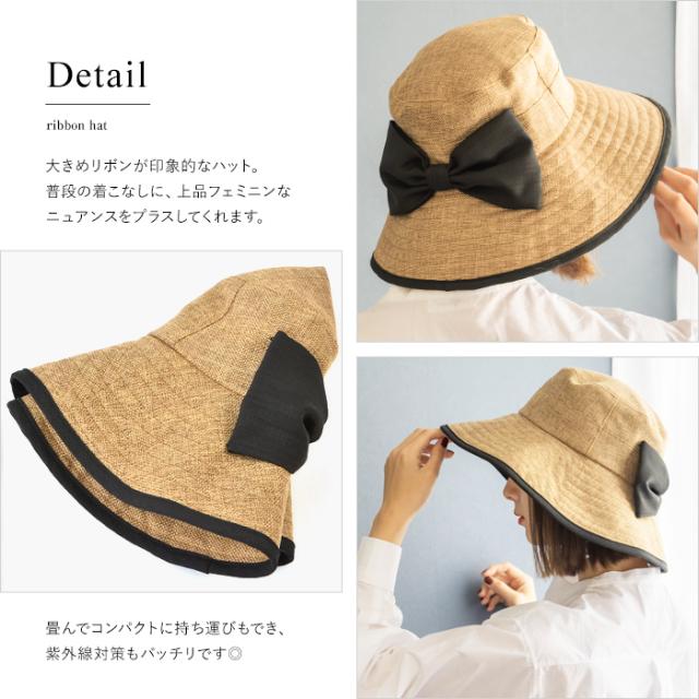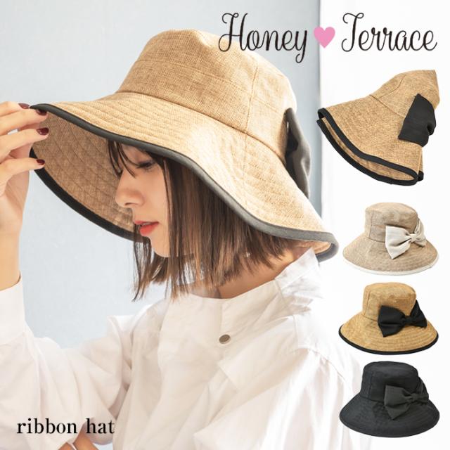 帽子 ハット レディース かわいい つば広 リボン 折りたたみ カジュアル お出掛け 日よけ おしゃれ プチプラ 大人女子 ギフト プレゼント 手洗いOK UV対策 サイズ調整可能 【Honey Terrace】