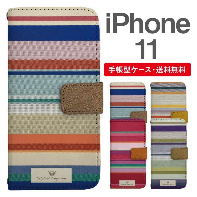 スマホケース 手帳型 iPhone 11 アイフォン 携帯ケース カバー 送料無料 ボーダー マルチボーダー ニット風デザイン agesugi_ssm