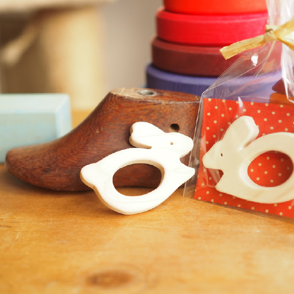 | きりかぶ工房 日本製 ヒノキのラトル うさぎ 男の子、女の子の出産祝いやハーフバースデーにおすすめの、国産木材檜(ヒノキ)を使用した木製ラトル(ガラガラ・歯固め)です。 |