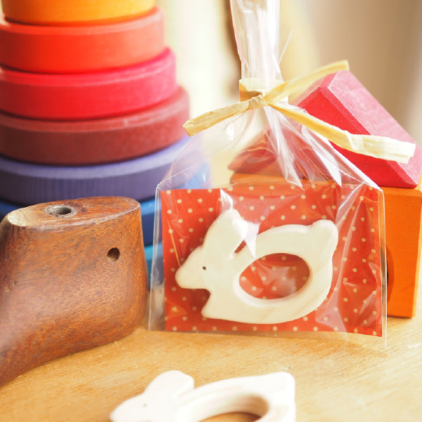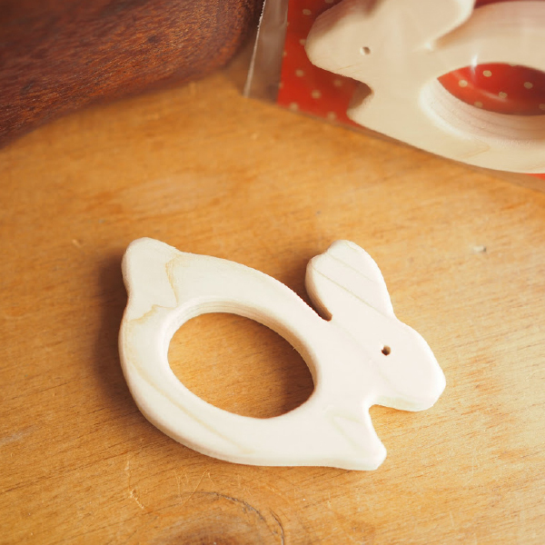 きりかぶ工房 日本製 ヒノキのラトル うさぎ ~ 男の子、女の子の出産祝いやハーフバースデーにおすすめの、ヒノキを使用した木製ラトル(ガラガラ・歯固め)です。