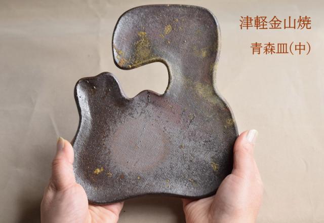 陶器 皿 青森(中) (横約15cm×縦約17cm) 重さ約257g 津軽金山焼 焼き締め 中皿 陶器 和食器 皿 渋い 和モダン 和風食器 おしゃれ 和食器 父の日 母の日 ギフト