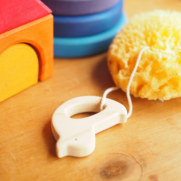 檜のラトルは、お風呂に浮かべて遊んだり、赤ちゃんの手遊びにも使えます。