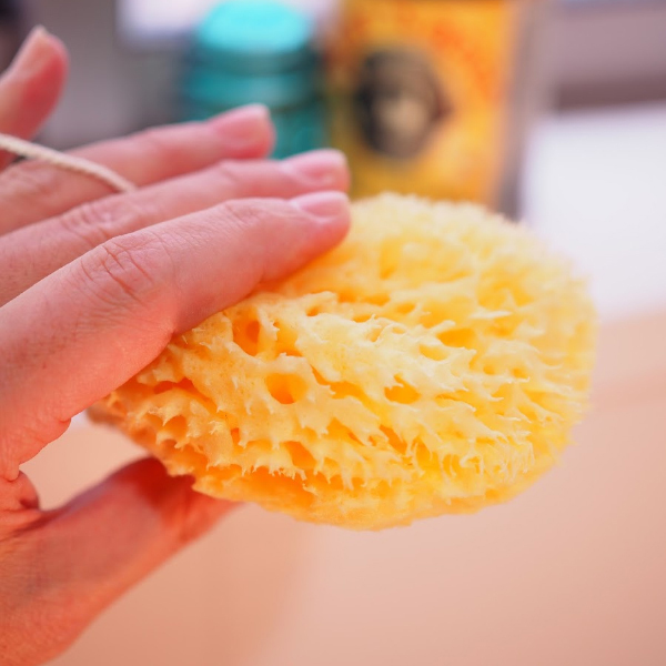 天然海綿の最高品種、地中海産のハニコム種を使用したスポンジは、水に濡らすとふわふわになります。