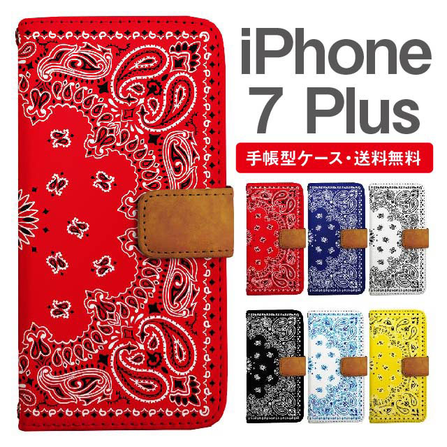 スマホケース 手帳型 iPhone7Plus アイフォン 携帯ケース カバー 送料無料 バンダナ柄 ペイズリー エスニック agesugi_ssm