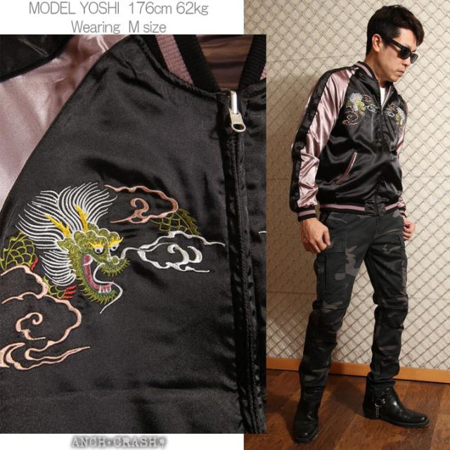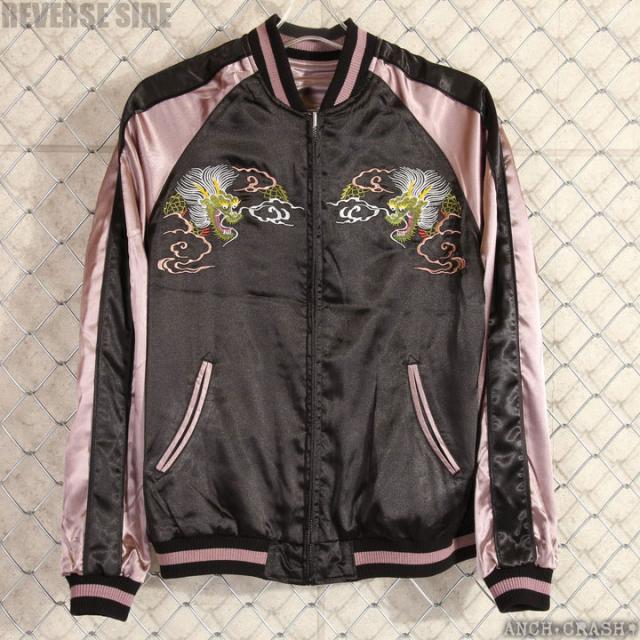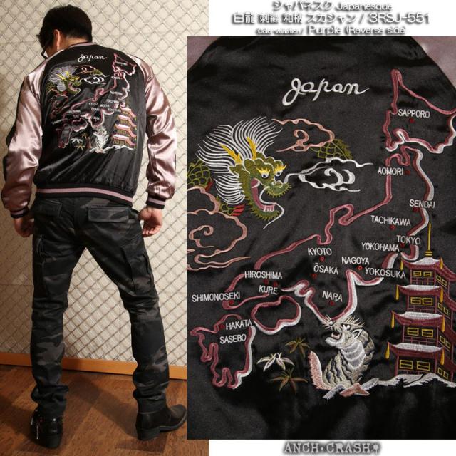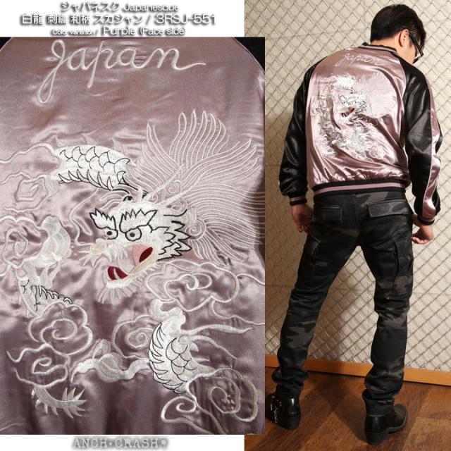 Japanesque ジャパネスク 白龍 刺繍 和柄 スカジャン(3RSJ-551) 【送料無料】パープル リバーシブル スーベニアジャケット