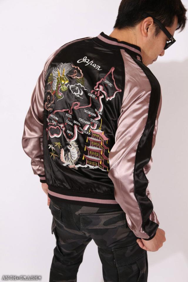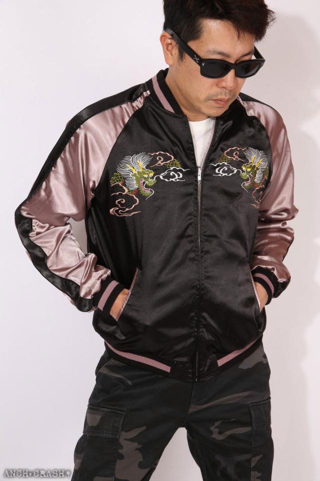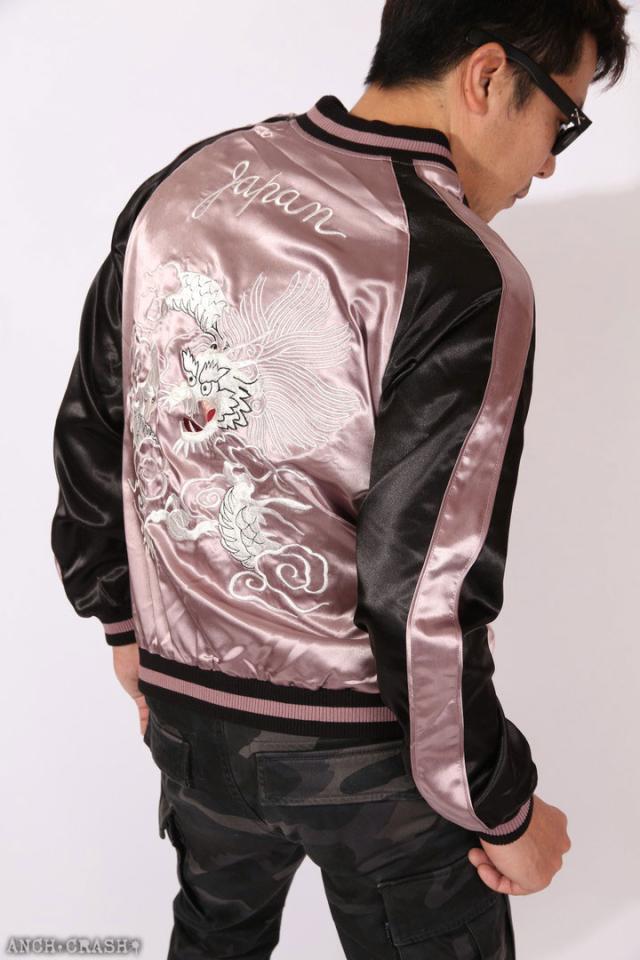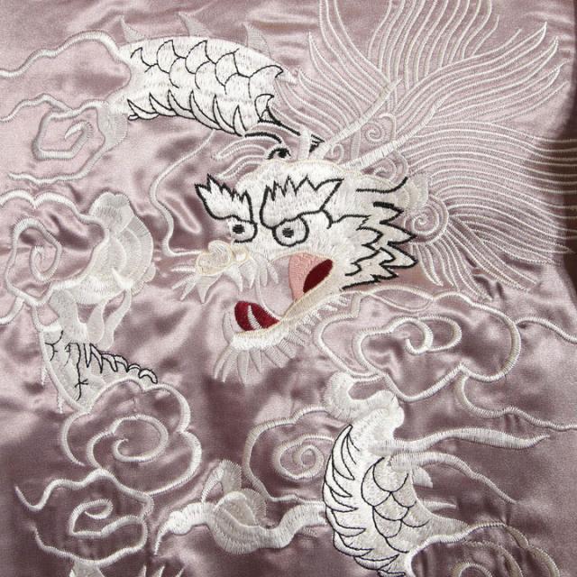 ヴィンテージスカジャン風のデフォルメが白龍をパープル地の上に刺繍した、見栄え新たなスカジャン。