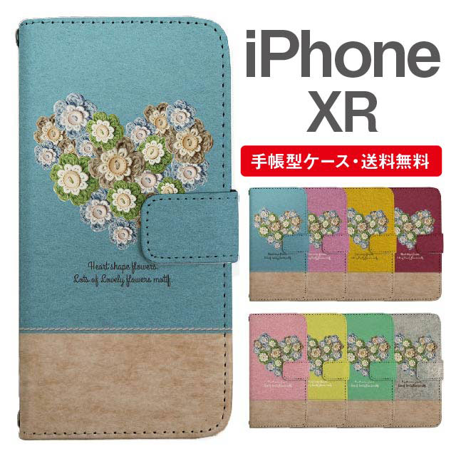 スマホケース 手帳型 iPhone XR アイフォン 携帯ケース カバー 送料無料 ハート フラワー 花柄 ニット風 バイカラー agesugi_ssm