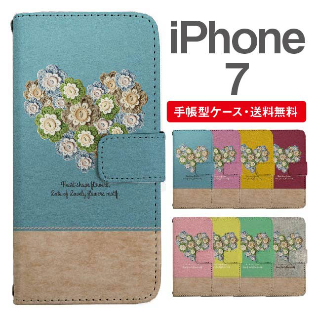 スマホケース 手帳型 iPhone7 アイフォン 携帯ケース カバー 送料無料 ハート フラワー 花柄 ニット風 バイカラー agesugi_ssm