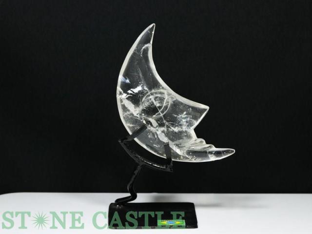 ☆置物一点物☆【天然石 彫刻置物】クレセントムーン(三日月) 水晶 (EX) (台付) No.40
