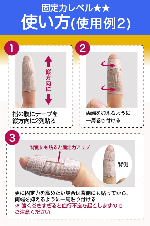 - テープが指に馴染んで痛みが軽減します。 仕事の時に使用しています。