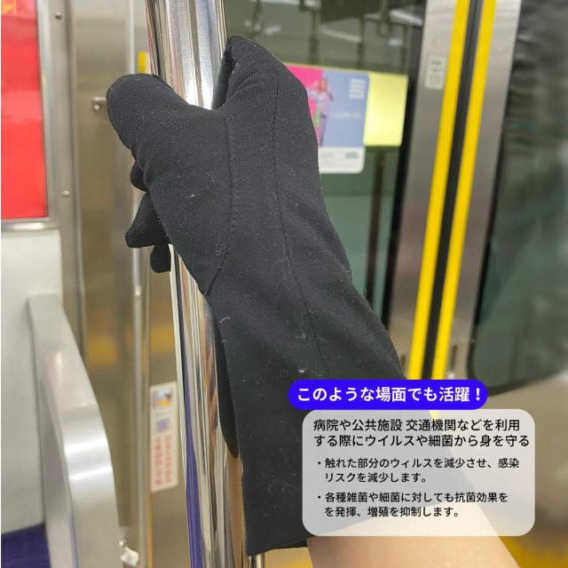 ウィルスや細菌を減退させる効果のある特別な触媒で加工した特殊な生地を使用したUV手袋。帯電防止効果もあり、花粉が脱落しやすく花粉症対策にも。