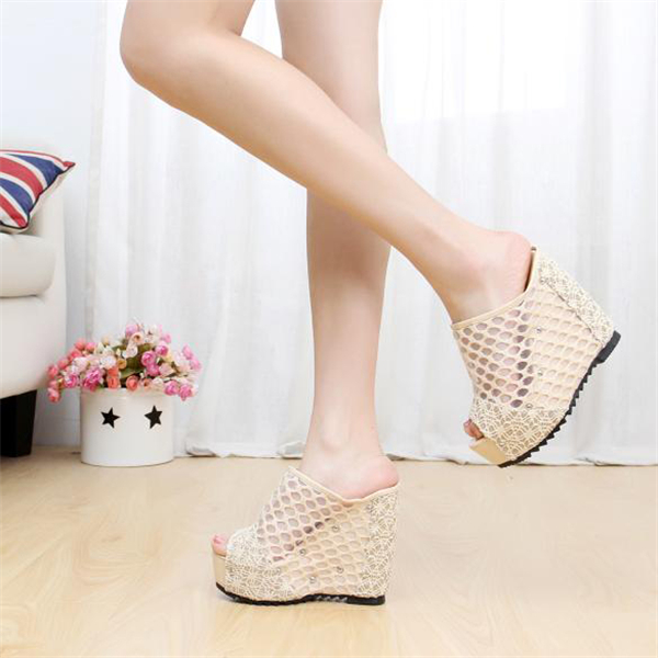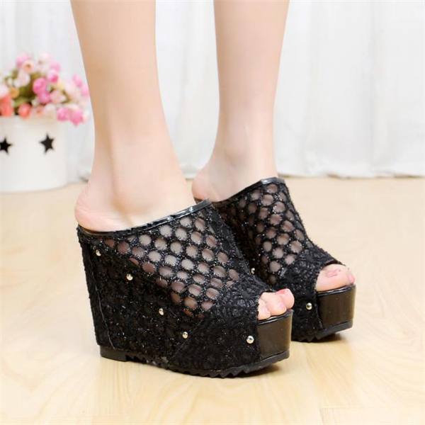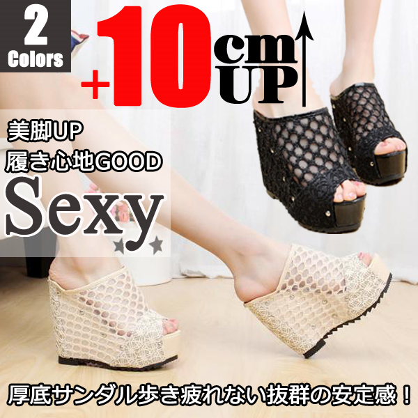 10cmUP レースミュール 夏サンダル レディース シューズ 厚底サンダル 美脚 オフィスサンダル ハイヒール 女性サボサンダル スリッポン ミュール ウェッジソール 厚底サンダル レディース ミュール ウェッジソール ハイヒール
