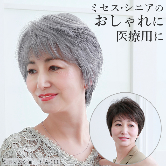 ミセスウィッグ A-111 プリシラ ミニマムショート ウィッグ ショート ミセス フルウィッグ オールウィッグ ショートウィッグ おしゃれウィッグ 自然 かつら 女性 医療用 ウィッグ ウイッグ 婦人用 レディース 全かつら グレイヘア 白髪ミックス wig 送料無料