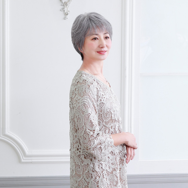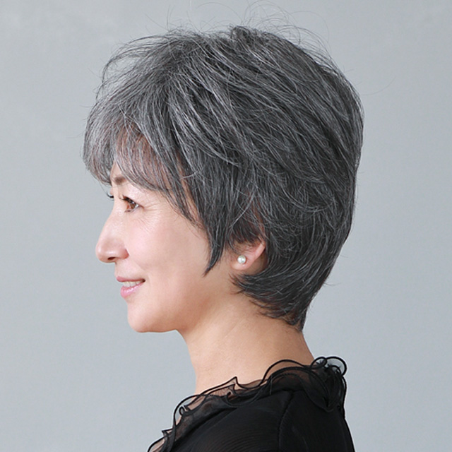 婦人用マシンメイド(機械植え)フルウィッグ(オールウィッグ)に待望のグレイヘア(白髪ミックス)が登場。