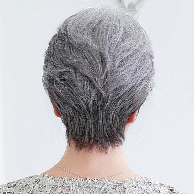 黒髪と白髪をほどよくミックスさせ、老け見えさせない配合にこだわりました。