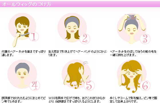 自毛をまったく見せずにスッポリかぶる「かつら」タイプのウィッグ。