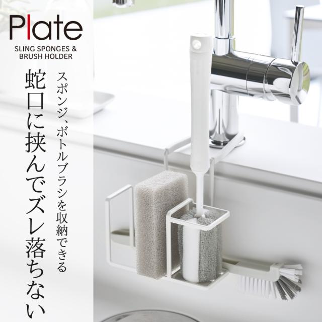 蛇口にかけるスポンジ&ブラシホルダー プレート ホワイト 山崎実業 plate 蛇口 スポンジホルダー 浮かせる シンク キッチン おしゃれ モノトーン ホワイト 5082