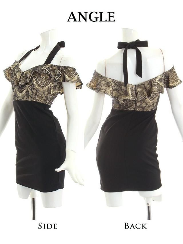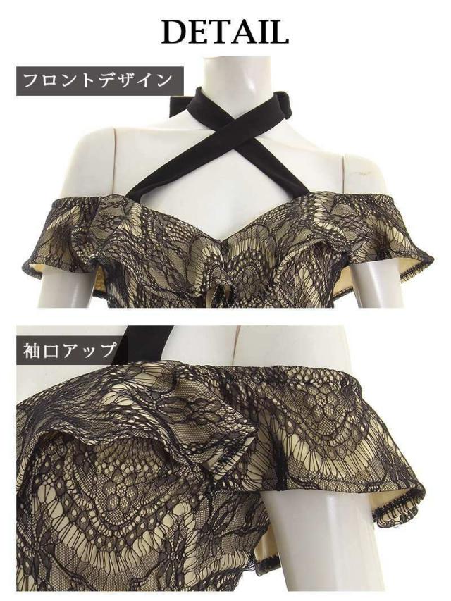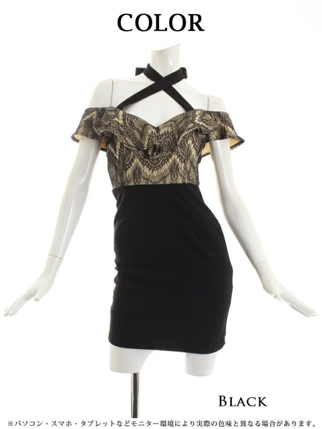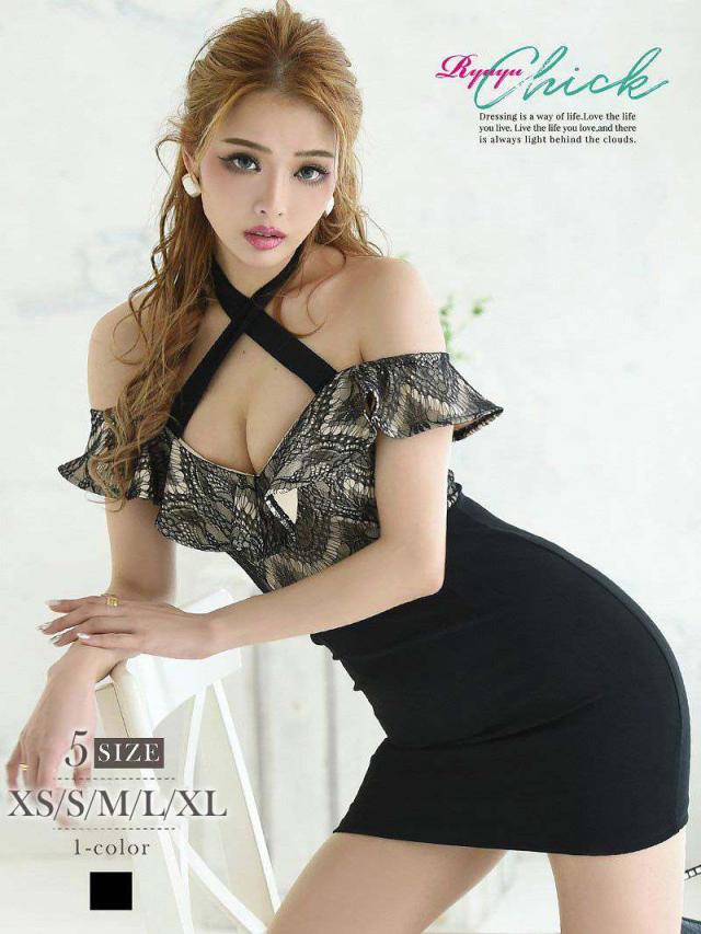 予約販売 ミニドレス RyuyuChick クロスネック 花柄レース 谷間魅せ オフショルダー タイト キャバ ドレス キャバ