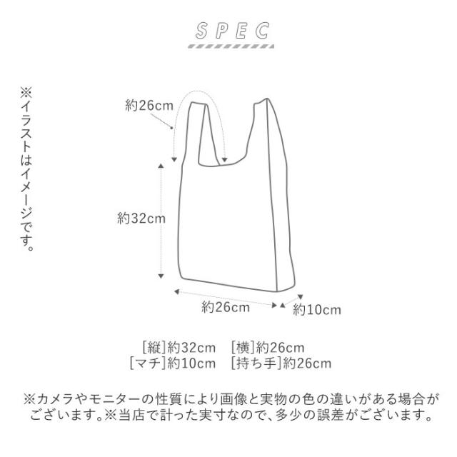 | サイズ | 【使用時】 [縦]約32cm/[横(底部)]約26cm/[横マチ]約10cm [持ち手]約26cm 【収納時】 [縦]約10cm/[横]約7cm/[厚さ]約3cm ※サイズは当店平置き実寸サイズです。実際の商品とは多少の誤差が生じる場合がございます。あらかじめご了承ください。 |