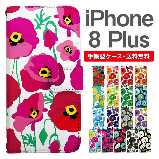 スマホケース 手帳型 iPhone8Plus アイフォン 携帯ケース カバー 送料無料 花柄 フラワー アネモネ agesugi_ssm