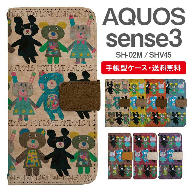 スマホケース 手帳型 AQUOS sense3 アクオス SH-02M SHV45 携帯ケース カバー 送料無料 アニマル くま うさぎ agesugi_ssm