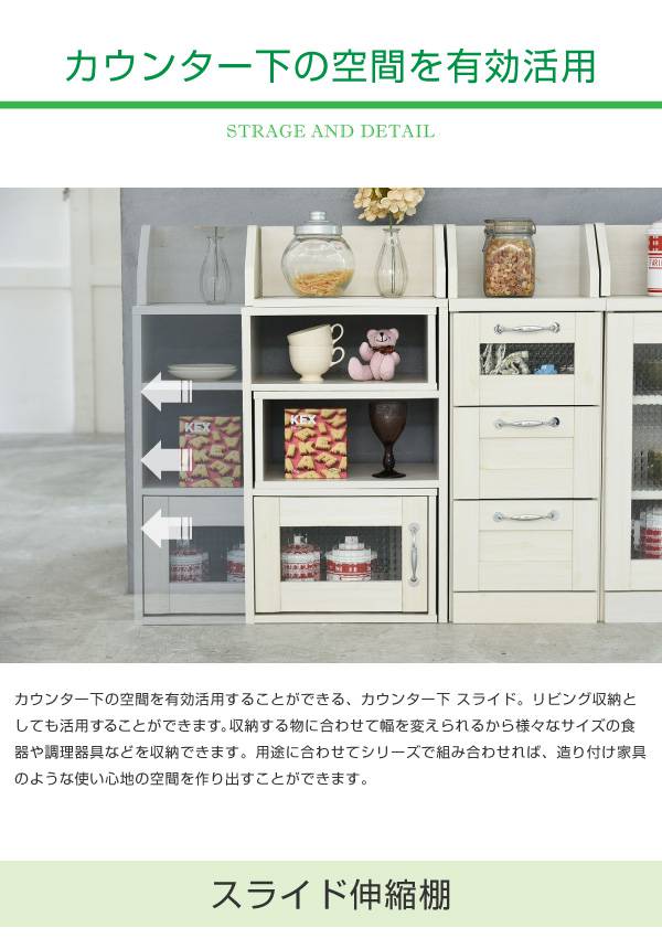 カウンター下収納 スライドラック カントリー風 モデム ルーター収納 伸縮タイプ 幅40 から 幅65 調整可能 高さ80 スリムラック 伸縮ラック 薄型 キッチン下収納 新生活 引越し 家具 沖縄 離島別途送料見積もり メーカーより直送します FLL-0063