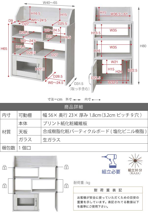 幅40〜65x奥行31.5x高さ80cm