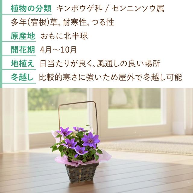 クレマチス ミゼットブルー/手付き籠/ラッピング