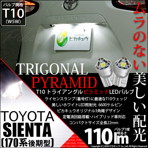 トヨタ シエンタ (170系 後期) 対応 LED ライセンスランプ T10 トライアングルピラミッド 110lm ホワイト 6600K 2個 ナンバー灯 3-C-4