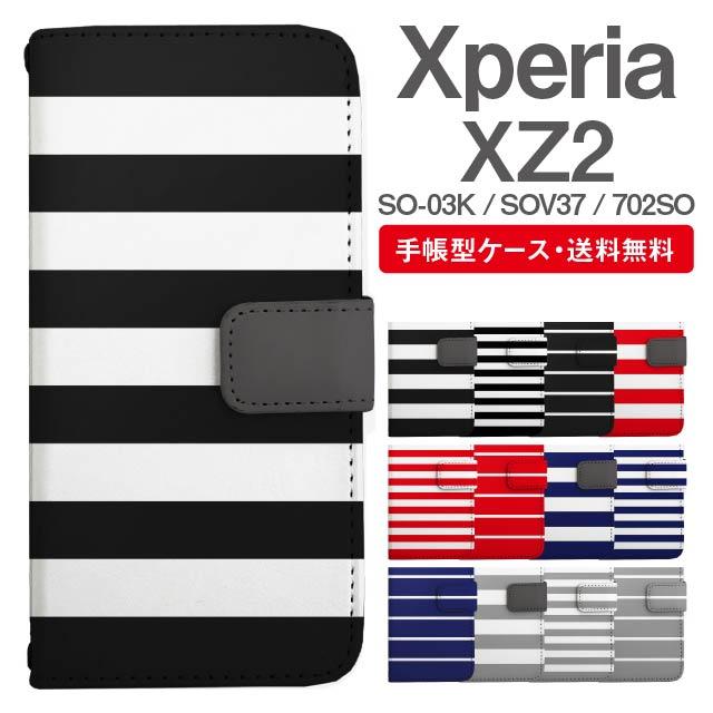 スマホケース 手帳型 Xperia XZ2 エクスペリア SO-03K SOV37 702SO 携帯ケース カバー 送料無料 ボーダー agesugi_ssm