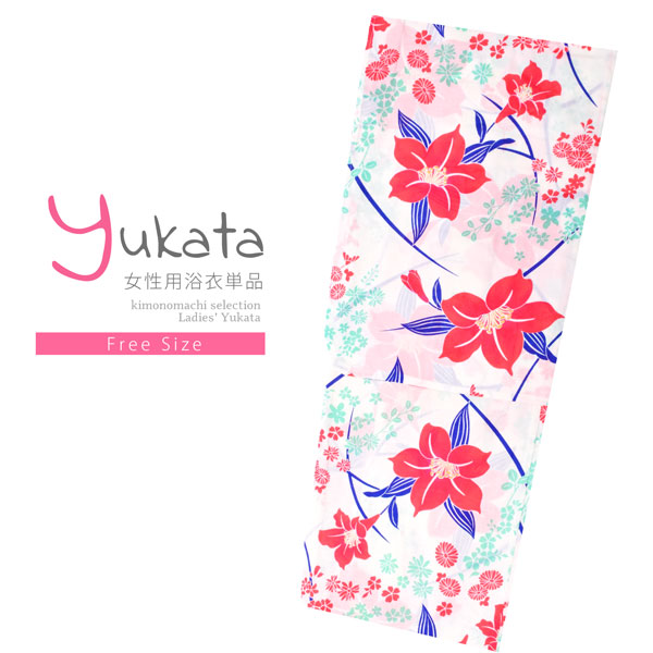 浴衣 レディース 単品「白地 花に芝」フリーサイズ レトロ モダン 大人柄 女性浴衣単品 女浴衣 ゆかた yukata 【メール便不可】