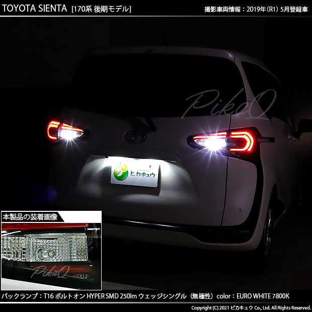 トヨタ シエンタ (170系 後期) 対応 LED バックランプ T16 ボルトオン SMD 蒼白色 ユーロホワイト 7800K 2個 5-C-2