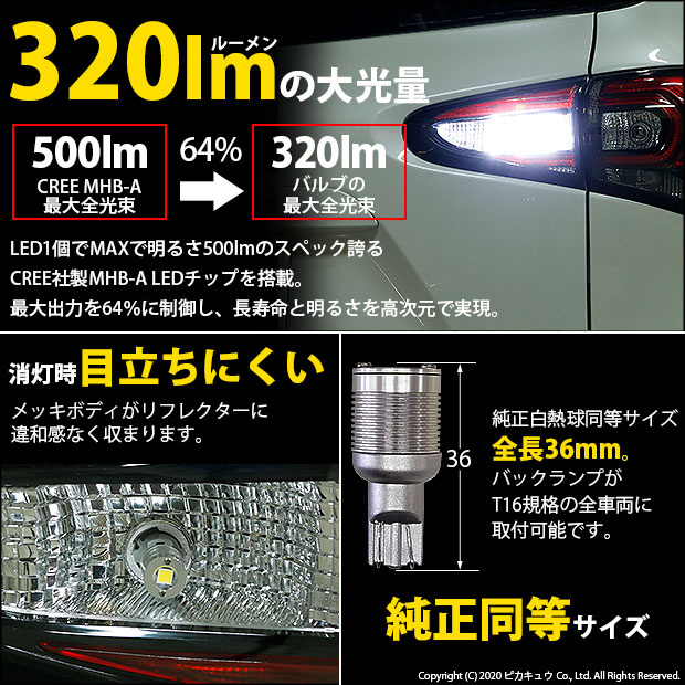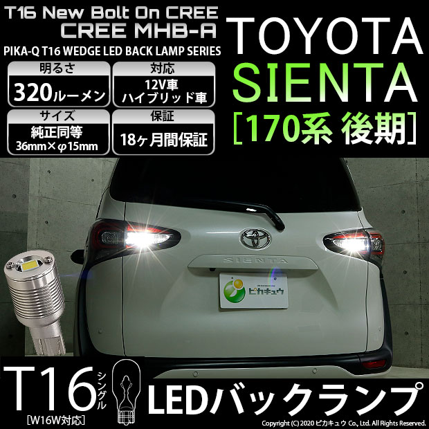 | LED,ピカキュウ,LED専門店,LEDバルブ,CREE MHB-A搭載,T16ウェッジ,T16 NEW Bolt On CREE,ボルトオンCREE,320ルーメン,バックランプ,後退灯,トヨタ,toyota,sienta,シエンタ,170系,シエンタ後期,170後期 |