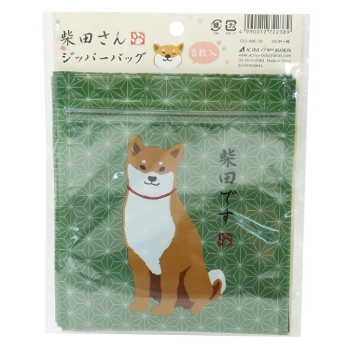 「柴田さんの住む東京わさび町 小分けビニール袋 ジッパーバッグ 5枚セット ABG-38 柴犬 13.9×14.4cm キャラクター グッズ メール便可」